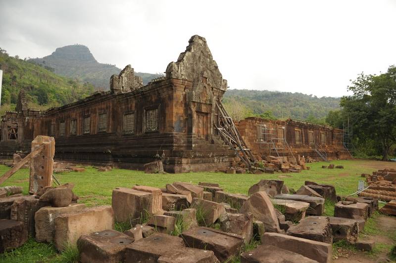 Wat Phu, an ancient Khmer temple complex in southern Laos is perched on the slopes of Mount Phu Kao and dedicated to the Hindu deity Shiva,
